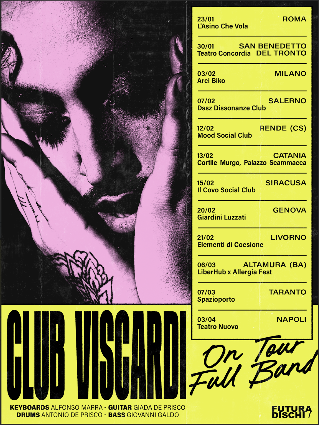 Da Gennaio 2026 sarà in giro per l’Italia con il suo Club Tour in full band che toccherà 12 città.